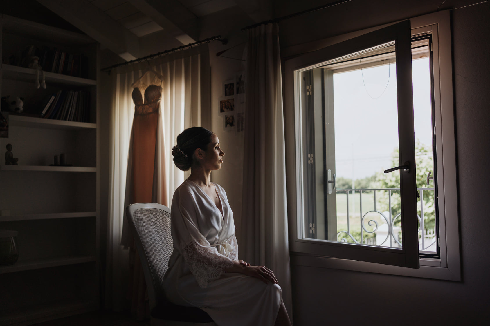 La camera da letto, infine, è la stanza in cui avvengono l’emozionante preparazione della sposa e la vestizione. Anche chi è affezionato alla cameretta più piccola dovrebbe scegliere la camera matrimoniale più ampia e spaziosa, in cui i piccoli dettagli fanno da set fotografico per gli scatti: copriletti, tenda importante, poltroncina e specchiera non devono mancare nelle foto dell’album di matrimonio dedicate alla preparazione della sposa. Meglio togliere soprammobili eccessivi e quadri alle pareti per rendere tutto visivamente più ordinato e far risaltare la sposa.