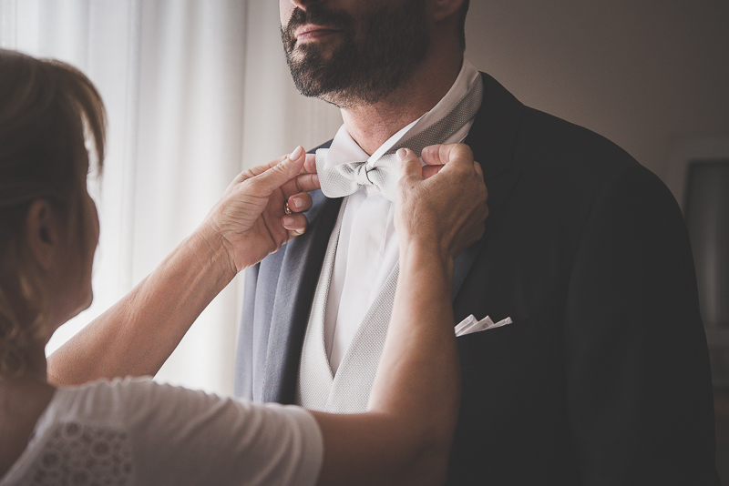 Sicuramente i passaggi fondamentali della preparazione dello sposo sono l’indossare la camicia, i gemelli e la giacca. Si tratta di azioni in cui il fotografo di matrimonio può coinvolgere la madre o il padre o i testimoni, per immortalare tutte le emozioni dello sposo circondato dalle persone che ama. Il segreto del professionista è focalizzarsi su espressioni e gesti, per catturare tutta la magia del momento.