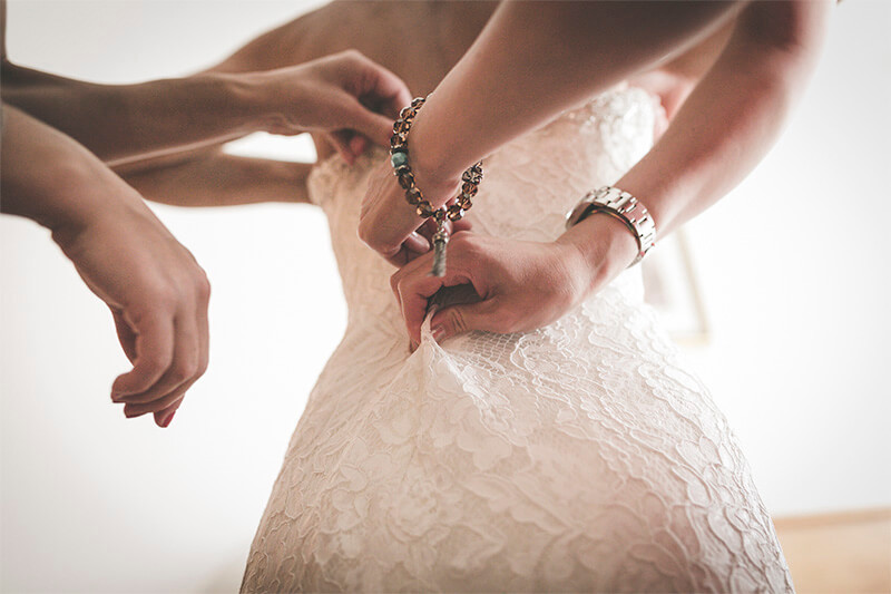 Indossare l’abito da sposa può essere un’esperienza semplicissima che richiede 5 minuti o un lavoro complesso e per cui potrebbe essere necessario più tempo, come nel caso di abiti con intreccio di nastri e pizzi sulla schiena. In questo caso vestire la sposa può richiedere anche mezz’ora. Anche in questo caso noi di Michelino Studio fermiamo per sempre questo momento con un approccio di fotografia emozionale: