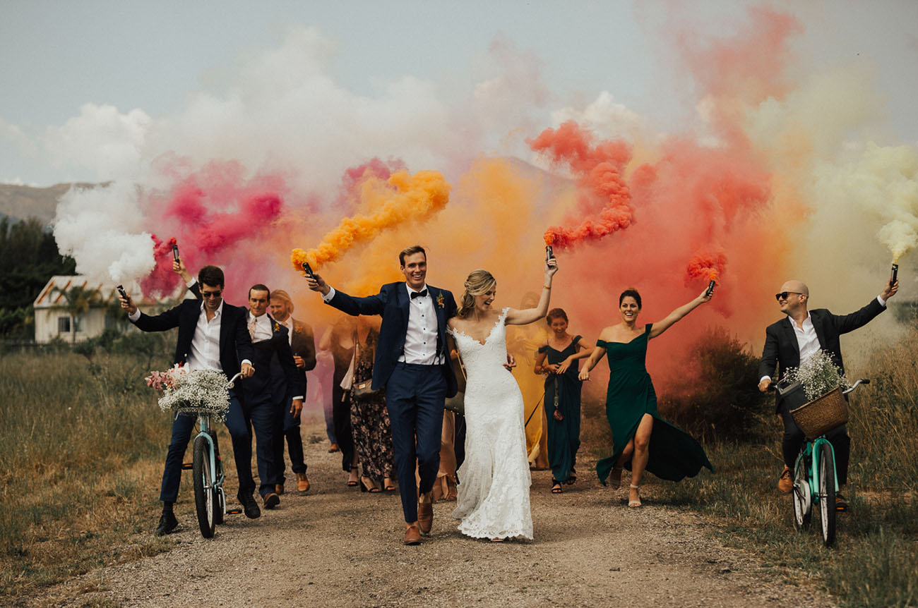 In tutti i casi usare una smoke bomb significa trasformare le nozze in un set cinematografico, in cui i colori diventano il fil rouge che accompagna decorazioni, allestimenti floreali e atmosfera. Usare le smoke bomb è una tendenza dei matrimoni degli ultimi anni e dona un tocco di classe capace di stupire gli invitati, ma anche di rendere unico il servizio fotografico matrimoniale.