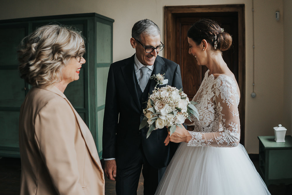 Un matrimonio elegante e raffinato per Benedetta e Alessandro. La giornata è iniziata con la preparazione della sposa, ritratta con discrezione e spontaneità.